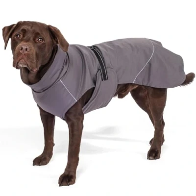 Bunty XXXL Waterproof Dog Coat Adjustable Fleece Lined Jacket with Reflective Piping Harness Hole Raincoats for All Breeds XXXL, 60cm, Grey