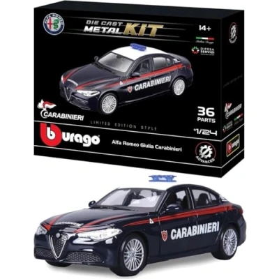 GIULIA CARABINIERI MODEL KIT: Bburago offers a real assembly kit to create a 1:24 scale replica of the Alfa Romeo Giulia, the car used by the Carabinieri. The model is designed to reproduce the details and characteristics of the real car in an extremely authentic way. The product is officially licensed by the Carabinieri and Alfa Romeo. TECHNICAL FEATURES: Discover the thrill of model making with our collectible product! Assembling this Alfa Romeo Giulia model offers an engaging and rewarding experience, perfect for those who love to build with attention to detail. RECOMMENDED AGE: Scale model perfect for collectors aged 14 and over. IDEAL AS A GIFT: Are you looking for an original and refined gift for a car enthusiast? A scale model car is the perfect choice! Whether they are an experienced collector or a novice, a quality model car will win them over and enrich their collection. Also perfect for those who love to build, assembly will become an enjoyable and engaging experience! BBURAGO: the iconic brand of die-cast scale vehicles licensed by major car manufacturers. Its models have contributed to the growth of children around the world and the passion of adults. The target audience is broad, from children to serious vehicle collectors., Manufacturer: BBURAGO