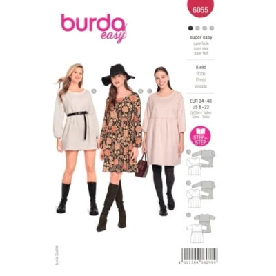 Burda B6055 Sewing Pattern, Paper, White, 6 18