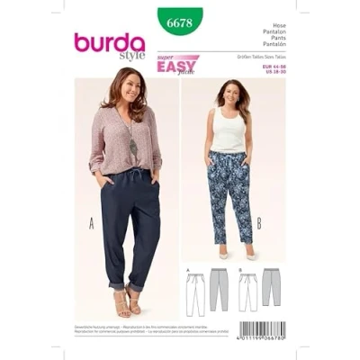 Burda Tapered Leg Casual Pants Pattern, Size 18 30, Women's Style