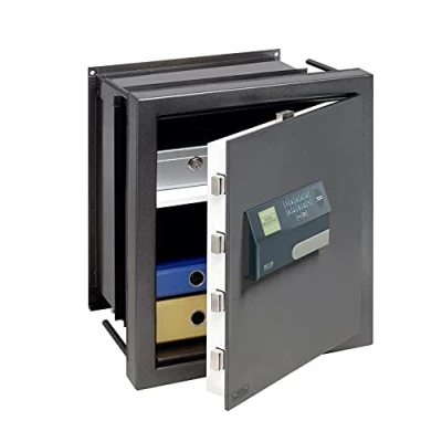 Fire protection and certified burglary protection: Safe for wall and floor mounting with resistance grade N and electronic combination lock with finger scan Adjustable shelf: file depth when fully pulled out, interior dimensions: H 440 x W 352 x D 178 - 296 mm, Open door dimensions: H 440 x W 336 mm Electronic combination lock with finger scan, VdS certified (class 2), programming of up to 10 user codes and 20 finger scans Frame made of flame-cut resistant stainless steel, All-round fire fold, Double-walled door: 3-sided locking, Thermal emergency locking system, Special puncture protection Contents: 1x BURG-WÄCHTER wall safe, Karat WT 616 E FP, incl. batteries, Exterior (HxWxD): 532x434x233-351 mm, Interior: 440x352x178,5-296 mm, Door (HxW): 440x336 mm, weight: 39 kg, contents: 27,5 - 45,7 l, Weight: 85.98028218 Pounds, Manufacturer: Burg-Wächter