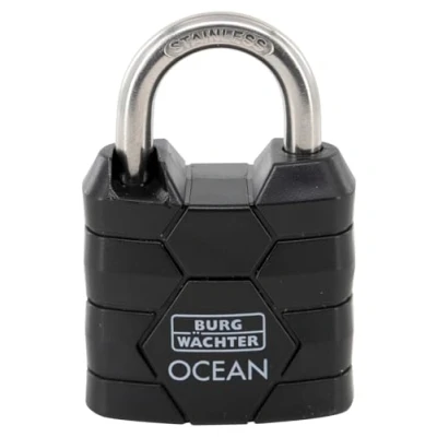 High security: this sturdy padlock with shackle made of stainless steel is suitable for closing cabinets, gates, containers, rolling grilles, vending machines or door bolts as well as a cellar lock, so that bicycles, garden tools, motorcycles or other items are protected from theft and do not become easy prey. Optimal stability: with double locking and a shackle thickness of 4.8 mm, the seawater resistant padlock guarantees ideal stability and a high level of breakage protection. The lock also has a shock-, impact- and scratch-resistant plastic coating and is thus optimally protected against rust. SEAWATERPROOF: The robust lock has been designed to withstand even extreme weather conditions such as high humidity, heavy rain and salty air. This protects the completely rust-proof and weatherproof lock from corrosion. Box contents and dimensions: 1 Burg-Wächter padlock Ocean 490 Ni 30 SB made from 70% recycled plastic, 2 keys, shackle thickness: 4.80 mm, shackle width (inside): 16.00 mm, shackle height (inside): 16.00 mm, total height: 50.00 mm. Quality since 1920: Burg-Wächter is a traditional family business with a special sense of responsibility for employees and the environment. The products such as door locks, safes and mailboxes are manufactured to the highest quality standards and are constantly being developed., Weight: 0.19400679056 pounds, Manufacturer: BURG-WÄCHTER