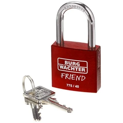 Long-lasting padlock for house, garden and as a love lock Versatile application: stainless due to high-quality aluminium body, Ideal for outdoor use Double-locked shackle and high-quality profile locking cylinder for maximum security Modern colours and neutral back side: ideal for engraving or labelling Contents: 1 BURG-WÄCHTER cylinder padlock 775 40 Friend 35 Red, Aluminium, Red, Weight: 0.2866009406 pounds, Manufacturer: Burg-Wächter