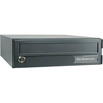 Optimal safety: the practical letterbox can be easily placed on the eBoxx models E (98l) and thus expands the parcel box with its patent-pending closure system with a functional letterbox. Sturdy construction: in the letterbox made of fully galvanised steel, reinforced base and laser welding, you can store your mail for a few days without any worries. Made in Germany: the countertop letterbox was made in Germany and meets the high Burg-Wächter quality standards. Box contents and dimensions: 1 Burg-Wächter top letter box, A 625 ANT, including mounting material, notification card for continuous use and pre-printed contracts for cooperation with parcel service providers, instruction manual (English language not guaranteed), external dimensions (H x W x D): 115 x 380 x 450 mm, volume: 20 litres, colour: Anthracite (similar to RAL 7 016) Quality since 1920: Burg-Wächter is a traditional family business with a special sense of responsibility for employees and the environment. The products such as door locks, safes and mailboxes are manufactured to the highest quality standards and are constantly being developed.