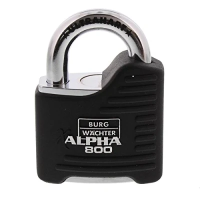 BURG WÄCHTER, Padlock, 11 mm Shackle, Ultra Hard, Drill and Cut Resistant, 2 Keys, Alpha 800 65 SB