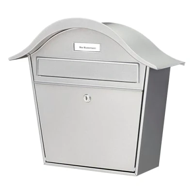 Steel mailbox: the letterbox made of galvanised steel is coated with a high-quality coating and has a curved roof, so that the contents are optimally protected from the elements. It is suitable for wall mounting as well as for standing on a matching stand (BURG-WÄCHTER Universal 150). Without newspaper compartment and with name plate: the letterbox with opening stop has no integrated newspaper compartment. You can attach your name to the letterbox flap. Made in Germany: this letterbox has been manufactured in Germany to the highest quality standards. It complies with the European standard EN 13724, which guarantees safe insertion and undamaged removal of mail up to DIN C4 format Box contents and dimensions: 1 Burg-Wächter postbox, HOLIDAY 5842 SI, 2 keys, spacers and mounting material, dimensions including lid (H x W x D): 357 x 390 x 135 mm, slot (W x H): 262 x 38 mm, material: galvanised steel, colour: silver; weight: 2.48 kg, Manufacturer: BURG WÄCHTER