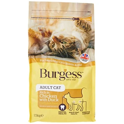 Burgess Adult Cat Food British Chicken and Duck 1.5 kg, Brown