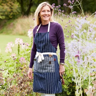 The Burgon & Ball Sophie Conran Apron features a timeless stripe design and is constructed from heavyweight ticking fabric.This full apron is perfect for use in and around the garden, keeping your clothes immaculately clean.Complete with two lovely deep pockets that are ideal for carrying all those little gardening bits and pieces. Finished with a riveted hanging loop in real leather, as well as a small patch pocket that is the ideal size for keeping your phone or keys safe and close to hand. An extremely practical apron, with an abundance of style and class. Dimensions exc webbing ties: W50cm x H75cm. Part of the Sophie Conran for Burgon & Ball collection. Sophie Conran, of the well-known Conran British design dynasty, brings her contemporary country house style to a wide range of gardening tools and accessories.Co-ordinating Sophie Conran items available separately, subject to stock.