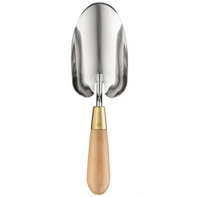 Designed by Sophie Conran this gardening hand Trowel has a stainless steel curved head joined to a waxed beech wood handle by a brass ferrule.The curved head tilts up towards the back to prevent soil falling from the back of the trowel, saving time and effort.Perfect as a gift for a keen gardener as the Trowel is presented in gorgeous gift box.Dimensions: L 26.5cm x W 8cm.