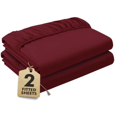 Burgundy Fitted Sheet Single Beds (90x190 cm, Deep 35 cm) Pack of 2 Soft Microfibre Elasticated Cover Breathable, Durable & Easy Care Bottom