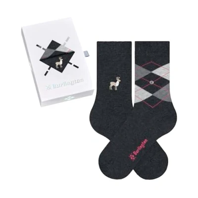 Christmas 2-pack = 1 pair of Argyle socks + 1 pair of Christmas embroidered plain-coloured socks, packed in a high-quality box Pack of 2 pairs of comfortable socks for women and teenage girls extra soft on the skin for a high wearing comfort, with pattern Socks for ladies to wear all year round with dress or casual looks or at work; high quality with reinforced stress zones and flat seam at the toes for a high wearing comfort; excellent gift for Christmas, a birthday, Mother's Day 2-pair pack of light and comfy women's socks in a mid-calf length covering the leg half way up to the knee; to wear with any shoe type e.g. trainer shoes, mocassins, ankle boots; excellent shape and colour retention even after repeated washing; machine wash 40°C One-size socks for any feet: the gender-specific knitting techniques ensure a wrinkle-free fit, a high wearing comfort and longer durability; the excellent gift idea - even without knowing the size Model number: 20712; available in one size fits all: 36-41 (UK 3.5-7)