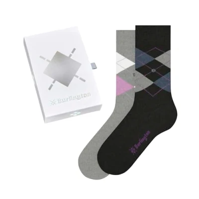 Ideal gift; pack of 2 pairs of socks for women packaged in an nice gift box; socks made of a soft cotton blend; classic argyle pattern most suited for casual looks; available in one size fits all UK 3.5-7 Thin and light socks for ladies; interesting design most suited for leisure looks, for example with trainers; high quality construction with reinforced stress zones for an optimum durability This set contains 2 pairs of women's socks in a mid-calf length so rise above the ankle half way to the knee; go with many shoe types e.g. trainer shoes or boots; excellent shape and colour retention even after repeated washing; machine wash 40°C One-size socks for any feet: the gender-specific knitting techniques ensure a wrinkle-free fit, a high wearing comfort and longer durability; the excellent gift idea - even without knowing the size Model number for the Burlington women's Basic Gift Box socks: 20597; available in one size fits all: 36-41 (UK 3.5-7) NOT JUST A SOCK! Burlington stands for modern products and creative patterns with colour diversity, allowing to create distinctive looks