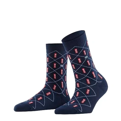 Single pack of comfortable socks for women in an organic cotton blend extra soft on the skin; traditional and original, funny British pattern with telephone booths woven inside a losange check; with fine elastic ribbed cuff and designer logo on sole Thin patterned socks in combed cotton, ideal to wear all year round with casual looks; high-quality construction with reinforced heel and toe and flat seam in the toe area to avoid pressure points; nice gift idea for Christmas, a birthday, Mother's Day Comfy women's socks in a mid-calf length covering the leg half way up to the knee; to wear with any shoe type e.g. trainer shoes, brogues, ankle boots; excellent shape and colour retention even after repeated washing; machine wash 40°C gentle One-size socks for any feet: the gender-specific knitting techniques ensure a wrinkle-free fit, a high wearing comfort and longer durability; the excellent gift idea - even without knowing the size Model number: 22114; available in one size fits all: 36-41 (UK 3.5-7) NOT JUST A SOCK! Burlington stands for modern products and creative patterns with colour diversity, allowing to create distinctive looks