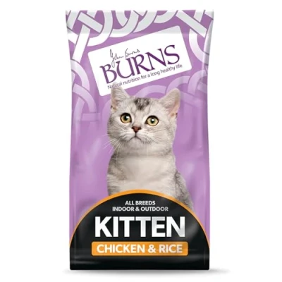 Following hot on the paws of our award-winning dog food, Burns Pet Nutrition’s new dry kitten food range offers the same high quality recipes Purrfect for supporting healthy growth and development in your kitten The smaller cat biscuits are ideal for kittens and contain high-quality chicken protein to provide your kittie with all 11 essential amino acids such as taurine for normal heart function, vision and brain development This kitten dry food contains calcium and phosphorus to help maintain strong bones, and zinc and selenium to ensure a healthy immune system. Rice provides additional energy while whole grain maize and chicken fat are great sources of essential fatty acids, linoleic and arachidonic acid Like all Burns complete diet options, our Hypoallergenic cat food is suitable for sensitive cats – made without artificial colours, flavourings or preservatives, or ingredients that commonly cause intolerance such as beef, wheat, soya and dairy