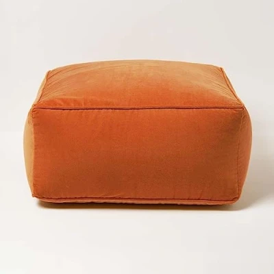 Burnt Orange Velvet Pouffe Bean Cube Homescapes