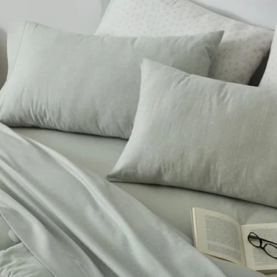 PRODUCT - Flannel sheet set with a geometric print, small dots in white on a laurel background. Embozo of the sheet in bay color, with a faux trim printed in white. Fitted sheet with adjustable bay colour. Pillow printed as the top sheet with fitted sheet. The set measures: a top sheet 240 x 270 cm..One pillowcase 45 x 170 cm..One fitted sheet 150 x 190/200 cm. Available in various sizes. Features: Winter bedding set with flannel fabric on both sides. 100% cotton fabric. Cashmere feel, maximum warmth. Breathable, solid colours. Maximum comfort and softness. Exclusive design. One pillowcase in the measurements of 90, 105, 135, 150 and two pillowcases in the size 150/160. 0, 180 and 200 cm. MATERIAL: Flannel is a fabric that has been extracted from the cotton fiber to give it a natural and exceptional feel and softness. Flannelette sheets are made with the main objective of achieving a pleasant and restful night's rest during the winter. These are high-end winter sheets. 100% cotton fabric. MAINTENANCE: Machine wash with delicate program and maximum temperature of 40º. Do not bleach. Iron on medium heat. Do not dry clean. Machine dry, normal cycle