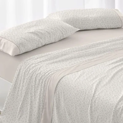 PRODUCT - Set of sheets with a naif print of small flowers in dusty maroon, with an ecru bottom. Top and pillow with the same design, with contrasting application in beige, and dusty maroon trim. Fitted sheet made in beige, as countertop and pillow applications. Set measurements: a top sheet 210 x 270 cm..One pillowcase 45 x 155 cm..One fitted sheet 135 x 190/200 cm. Available in various sizes. ✅ FEATURES: Soft touch. Quick and easy ironing. Long lasting. Does not pill. High mattress 32 cm. Single-sided printing. It is recommended to wash before the first use MATERIAL - Cotton and polyester fabric, which is great iron and offers a super pleasant touch. These are the qualities of this 144 thread count sheet set, which also provides a long service life. The quality of the print means that its appearance remains unchanged after multiple washes, as long as the indications contained on both the packaging and the label sewn to the garment are observed. A light wash in time and detergent is recommended prior to the first use. MAINTENANCE: Machine wash with delicate program and maximum temperature of 40º. Machine dry, normal cycle. Do not bleach. Iron on medium heat. Do not dry clean