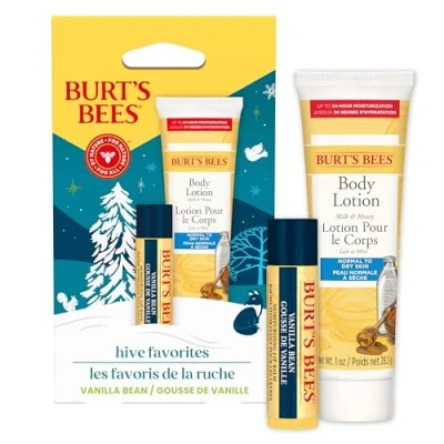 Burt's Bees Gift Set for Lip & Body, Vanilla Bean Balm Mini Milk Honey Body Lotion, Hive Favorite Limited Edition