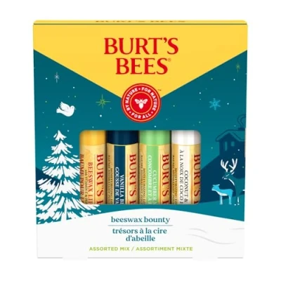 LIP BALM GIFT SET: Lip balm multipack with four hydrating lip balm in Burt's Bees iconic flavours: Beeswax, Vanilla Bean, Cucumber Mint and Coconut and Pear ALL DAY MOISTURISATION: These lip balms intensely hydrate and nourish dry lips with all-day moisturisation and prevent lips from drying out NOURISHING, HARD-WORKING INGREDIENTS: Enriched with responsibly sourced, conditioning Beeswax, nourishing Coconut Oil and antioxidant-rich Vitamin E; Peppermint Oil provides a cooling tingle to your lips SOFT AND SMOOTH LIPS: With a matte finish and moisturising balm texture, these chapstick lip balms leave your lips feeling soft, smooth, healthy and supple RECYCLABLE PACKAGING: Beautiful giftable set made from FSC certified, 50 percent post-consumer recycled card; Gift packaging is 100 percent recyclable