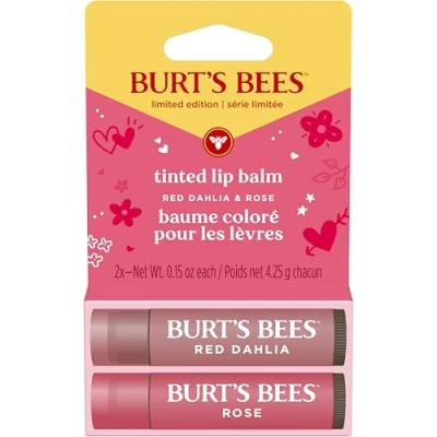 Burt's Bees Tinted Lip Balm Duo Pack, Limited Edition Gift Set With Rose & Red Dahlia,100% Natural Origin, 2x4.25g