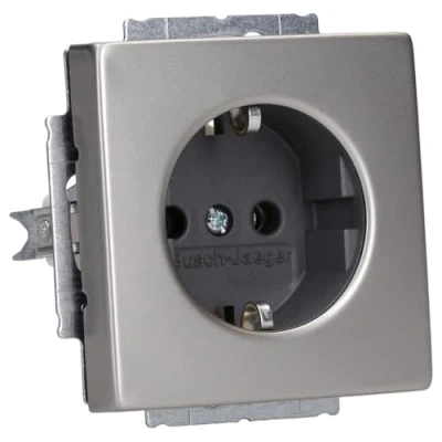 Busch Jaeger 20 EUC 866 Schuko Socket Insert, Stainless Steel, Silver
