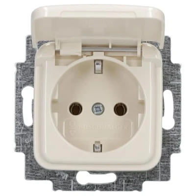 Busch Jaeger 20EUK 212 SCHUKO Socket Outlet, hinged lid, ivory, Duro 2000 SI