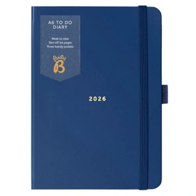Busy B 2026 Diary A6 Weekly Planner with to Do Lists & Notes Pages Compact Navy Journal Week View Layout, 3 Pockets Year