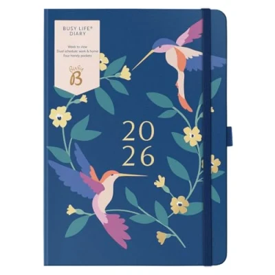 DAY-TO-DAY LIFE PLANNER - Stay on top of your schedule with this handy weekly planner. This 13.5 x 19cm diary fits conveniently in your bag or on your desk, while the durable board cover keeps everything protected throughout the year. DUAL PLANNER - This academic diary features a unique dual-column design. Manage work and home, parents and kids, with space for lists and to-dos to help you stay coordinated. VERSATILE STORAGE - More than just a work diary, this planner includes 4 storage pockets, an elastic closure, a handy pen loop and a ribbon marker. Keep all your important items together and never lose your place. AMPLE WRITING SPACE - Plan ahead with the week-per-page calendar. This life planner also includes a full-year calender, notes section and space for timetables to keep you organised long-term. STYLISH DIARY - The attractive birds pattern adds a touch of sophistication to your planning. Running from January to December 2026, this diary will keep you organised in style all year long.