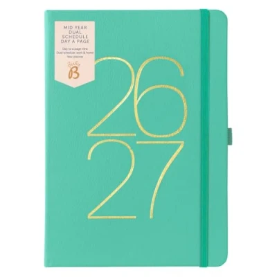 MID YEAR DUAL SCHEDULE DAY A PAGE DIARY – Running from August 2026 to August 2027, this clever diary lets you coordinate two daily schedules side-by-side to get the most out of your academic year. DESK DESIGN – The perfect handbag size to fit in your handbag or sit on your desk, this dual-schedule academic diary measures 15 x 21cm (approximately A5) when closed. TWO SCHEDULES - The ideal diary to perfect your work/life balance or co-ordinate two busy schedules, you can divide your day the way that suits you best, with space to record your daily priorities. PLAN YOUR YEAR IN STYLE - The Dual Schedule Day a Page diary features a vibrant green vegan leather over a durable board cover with gold foil detailing. Perfect to plan your academic year ahead. OTHER FEATURES – This smart planner also features an elastic closure band, pen loop (pen not included) and ribbon page marker. Planning your academic schedule has never been so easy!