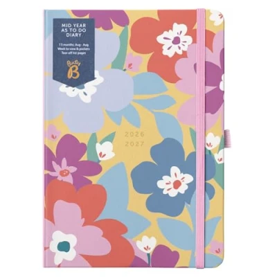 Busy B A5 Diary Mid Year Academic Planner Aug '26 '27 Floral Journal Cover Weekly with to Do Lists, Notes, Week View, 3 Pockets, & Elastic Closure