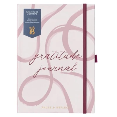 Busy B A5 Undated Gratitude Journal Space for Daily Intentions, Weekly Reflections To Inspire Mindful Moments With Notes, Storage Pocket & Stickers Pink Ribbon Design