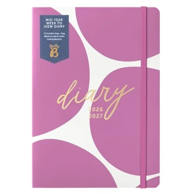 Busy B A5 Week to View Diary Mid Year Academic Planner Aug '26 '27 Spot Print Journal Weekly Layout opposite a Notes Page, Goals, Expenses, Pen Loop & Elastic Closure
