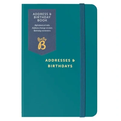 ADDRESS & BIRTHDAY BOOK - Discreet and small size address & birthday book notebook with hard cover to store all your loved ones addresses and birthdays, which measures 9cm x 14cm when closed. HANDBAG HERO – This compact little book is great for on the go between the office and home life. Features an A-to-Z printed index to find what you need easily, with an elastic closure to keep your details safe and enclosed. HANDY POCKETS & STICKERS - Handy storage pockets great for storing postcards & stamps. PERFECT FOR GIFTING - The ideal small yet practical gift for friends, family and colleagues. FSC CERTIFIED - At Busy B, we feel it is important to help take good care of nature and the climate. Being FSC certified means that we are compliant with FSC standards based on agreed principles for responsible forest stewardship that are supported by environmental, social, and economic stakeholders.