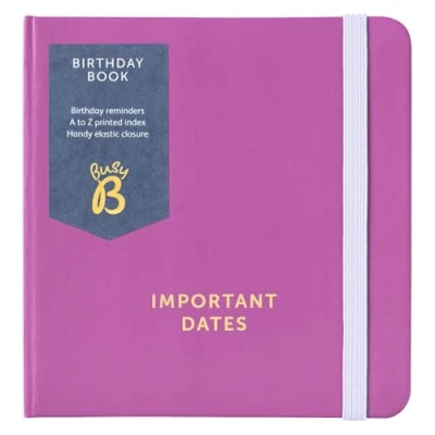 Busy B Birthday Log Book Pink Cover Small & Compact Design, Reminders, Ordered by Month for Easy Reference, Space Multiple Birthdays Per Date Elastic Closure Band