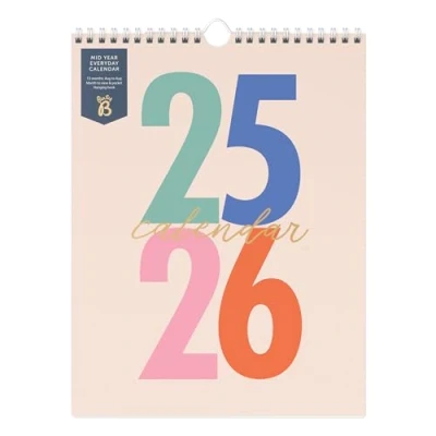 Busy B Mid Year Calendar Academic Everyday Planner Aug '25 '26 Multi Wall for People with Month To View, Do’s, Notes, Stickers & Storage Pocket 29.5 x 22cm