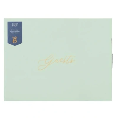 WEDDING GUEST BOOK - Capture memories from your special day with this elegant Busy B Wedding Guest Book. With 64 pages, there’s plenty of space for friends and family to leave heartfelt messages, well wishes, and advice for your married life. A timeless keepsake to treasure forever. STYLISH DESIGN - Finished in sage green vegan leather, this guest book combines sophistication with practicality. The soft-touch cover and elegant design make it a beautiful addition to your wedding décor and a standout keepsake. OTHER FEATURES - Includes a ribbon closure to keep pages secure, ensuring your guest messages stay safe. Each page has ample writing space, making it easy for guests to leave detailed notes. Perfectly sized for display or storage after your big day. PERFECT ENGAGEMENT GIFT - A thoughtful and practical gift for the engaged couple, this guest book is ideal for weddings, bridal showers, or engagement parties. Helps preserve the memories of your loved ones’ messages for years to come. FSC CERTIFIED – At Busy B, we believe in protecting nature and the climate. This address book is FSC certified, meaning the paper comes from responsibly managed forests that meet strict environmental, social and economic standards.