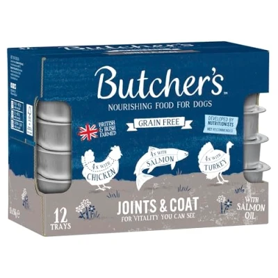Butcher's Complete Wet Tray Grain Free Hypoallergenic Adult Dog Food Joint & Coat Pack 12x150g Chicken, Salmon Turkey