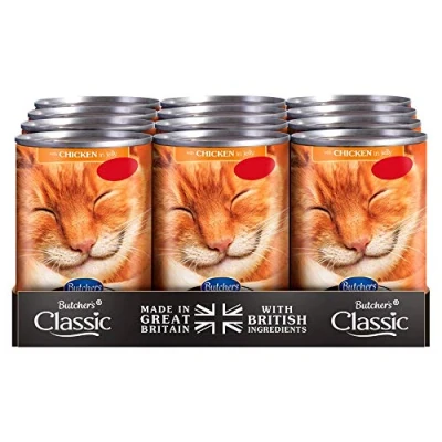 Butchers classic chicken 400g x 6 Butcher's classic is a complete cat food for adults cats. All the vitamins & minerals your cat needs. Made with natural ingredients. High in natural protein providing essential amino acids for healthy muscles. Gluten free. No artificial flavours, colours or preservatives.