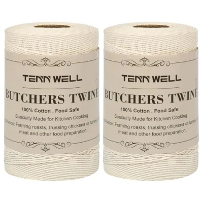 SAFE BAKERS TWINE - Made of cotton, this string is designed for cooking, safe and harmless for your family BUTCHERS TWINE - This bakers string is perfect for trussing a turkey, chicken, or roast, and for other culinary tasks, strong enough for trussing and tying meat MULTI-PURPOSE - This white cotton twine also works well on arts and crafts, book binding, decorating and gardening applications. Making candle wicks is also a good choose SIZE of COOKING TWINE - 3ply, 0.04inches (1mm) thick, with 1312 feet (400m), this thick kitchen string is long and strong enough for you to use in many occasions WIDE APPLICATION - This cotton string is also perfect for christmas gift wrapping, packaging, crocheting, packing material and drawstring