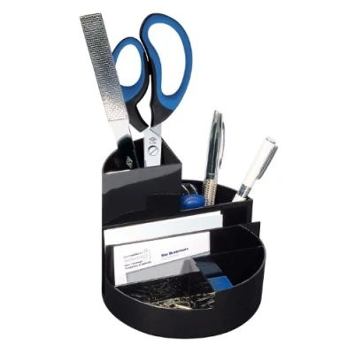 AmazonWedo round box butler black. Keep your desk tidy. With four compartments, letter tray and note sheet compartment, made of high-quality plastic, diameter 140 mm, height 125 mm