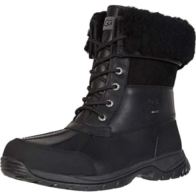 Waterproof style Waterproof full-grain leather upper Cuffable waterproof suede shaft 8mm sherpa lining on vamp and quarter 17 mm curly UGGpure wool lining on shaft and tongue Cushioning foam insole lined with 7mm UGGpure wool to naturally wick away moisture Internal EVA midsole Exclusive Vibram outsole Waterproof breathable bootie construction