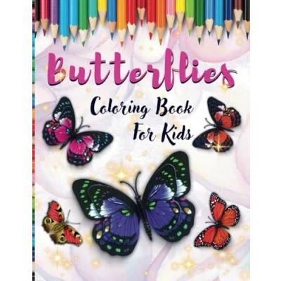 Butterflies Coloring Book for Kids: Easy and Cute Style 44 Pages of Different Beautiful Flowers Kids Ages 6 12 Mazes