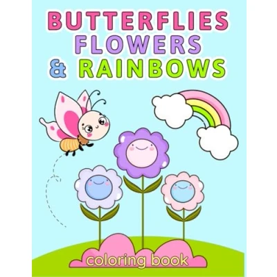 Butterflies, Flowers, and Rainbows Coloring Book: Cute Easy Activity Book for Kids Ages 4 8, Boys Girls Large Print, Bold Beautiful Designs Relaxation