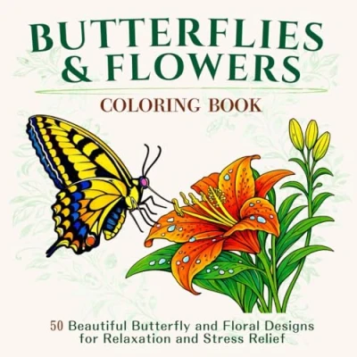 Butterflies & Flowers Coloring Book: 50 Beautiful Butterfly and Floral Designs for Relaxation Stress Relief