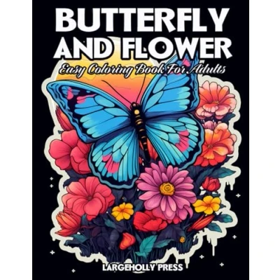 Butterfly And Flower Coloring Book: Easy Simple Designs for Adults, Seniors, Beginners Kids Featuring Butterflies Flowers