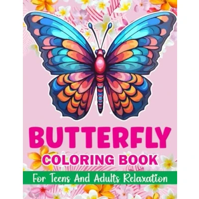 Butterfly Coloring Book For Teens And Adults Relaxation: Flowers Cute Butterflies Beautiful Designs Anxiety, Stress Relief Relaxation