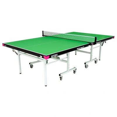 The Butterfly National League 22 Rollaway Indoor table tennis table with a 22mm quality play top is a good choice for everyone who seeks a classic piece of ping pong equipment for enjoyable playing with friends and family or just solo as there is a playback facility. This strong table is equipped with height adjusters and 8 wheels for easier transport. The table is ready assembled and has a folding mechanism which ensures safer use. With the table, you get a Butterfly National League net and a post set so you can start your game in no time and simply have fun!