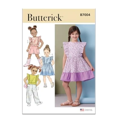 BUTTERICK Paper Pattern B7004A Children's Dresses, Top, Shorts and Trousers A (3 4 5 6 7 8)