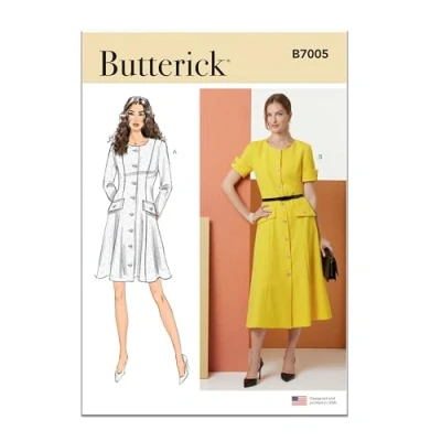 BUTTERICK Sewing Pattern B7005D5 Misses' and Miss Petite Button Front Dress with Sleeve Variations D5 (4 6 8 10 12)