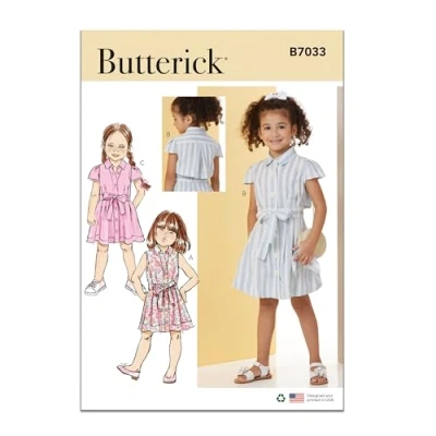 BUTTERICK Sewing Pattern B7033A Children's Dress with Sleeve Variations and Tie Belt A (3 4 5 6 7 8)